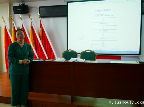 院感科干事吴丽萍讲解穿脱防护服理论知识