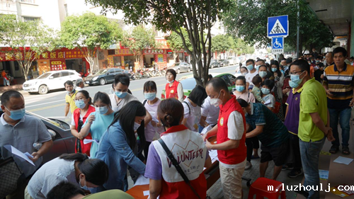 志愿者服务岗,志愿者正在维持群众排队秩序