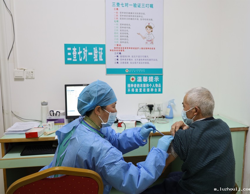 医护人员对前来接种新冠疫苗的群众“三查七对一验证”后进行疫苗接种
