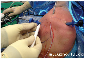 C.关节镜术中图,微创切口