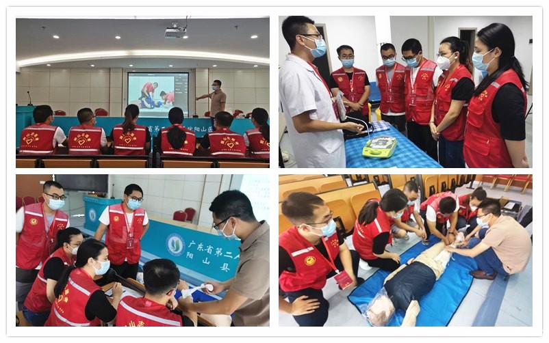 为迎接省运会测试赛,做好医疗卫生保障工作,我院组织阳山县志愿者协会医疗组成员进行创伤急救技能培训。针对性地开展了心肺复苏、AED的使用、创伤止血包固定搬运急救技术等运动会医疗保障常见问题的培训,让每位工作人员都能熟练掌握诊疗流程和技术规范。