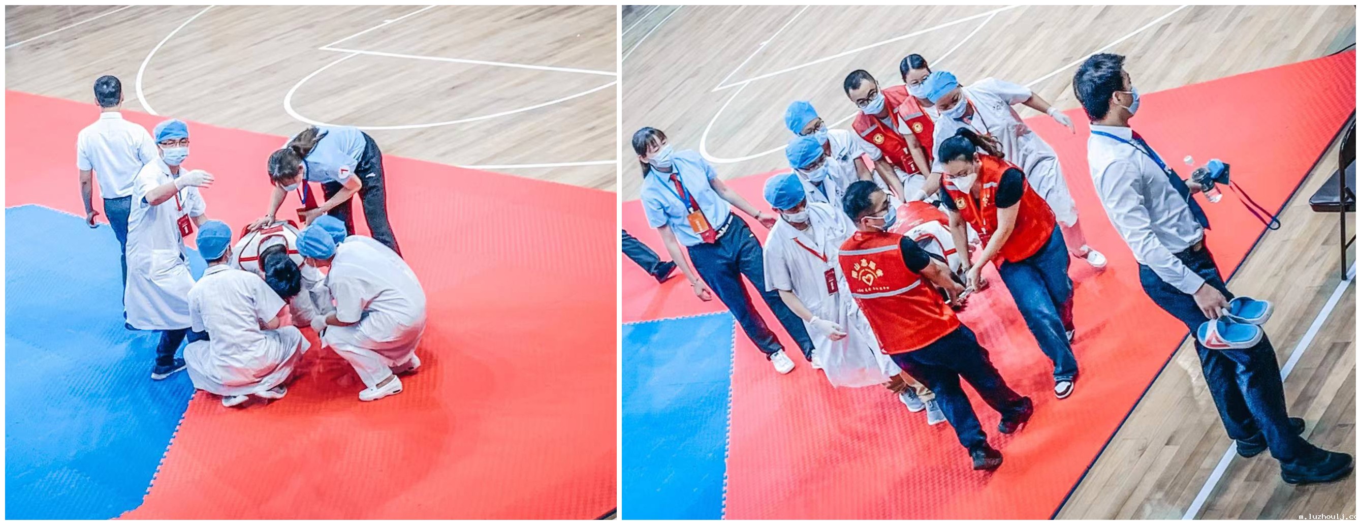 此外,我院医护人员根据比赛场馆医疗室(点)的设置和救护车辆停放点设置等情况,指导落实医疗室、医疗点及相关配套设施,并解决工作中遇到的实际问题,提出具体要求,进一步改进和完善工作计划,为接下来8月份的省运会正式赛的医疗保障工作打下坚实基础。