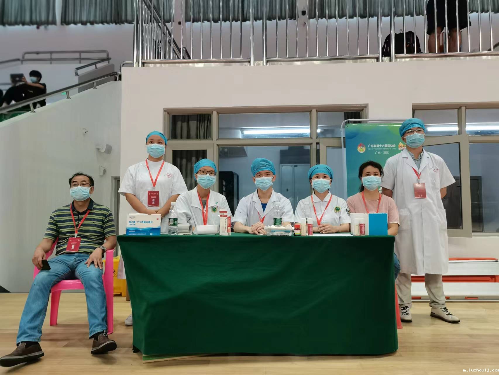 比赛期间,在县体育场设置医务室、场馆现场医疗点。统筹优质医疗资源,抽调政治素质高、业务技术好、工作责任心强、临床阅历丰盛的急诊科、骨科及脑科中心医护人员组成医疗救治保障队伍,由急诊科主任李向东和骨科主任肖飞带队的8名医务工作者派驻县体育馆全程值班,为运动员、教练员、裁判员及工作人员提供及时、有效的医疗卫生服务。派驻救护车值班,随车配备必须的急救药品及器械,保证运动员受伤后第一时间得到及时转送回院救治。全部参加医疗卫生保障工作的相关人员保证信息畅通,准时联络,保证突发事件的及时处置,并根据《广东省第十六届运动会和第九届残疾人运动会医疗保障药品和器械配置》清单配备医疗仪器、药品、材料。