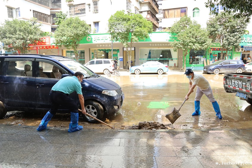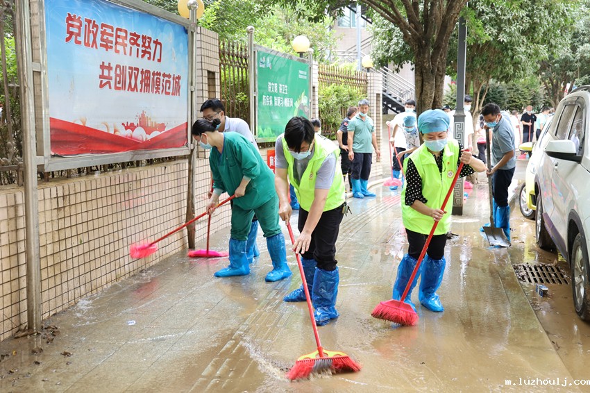 活动当天烈日炎炎,党员志愿者和医院职工的情绪一如烈日般高涨,个个干劲十足,大家拿着扫把、铁锹等工具,分工合作,一边清扫淤泥垃圾,一边用水冲洗街道。党员志愿者发扬不怕苦、不怕累、不怕脏的精神,撸起袖子加油干,扑下身子扎实干。