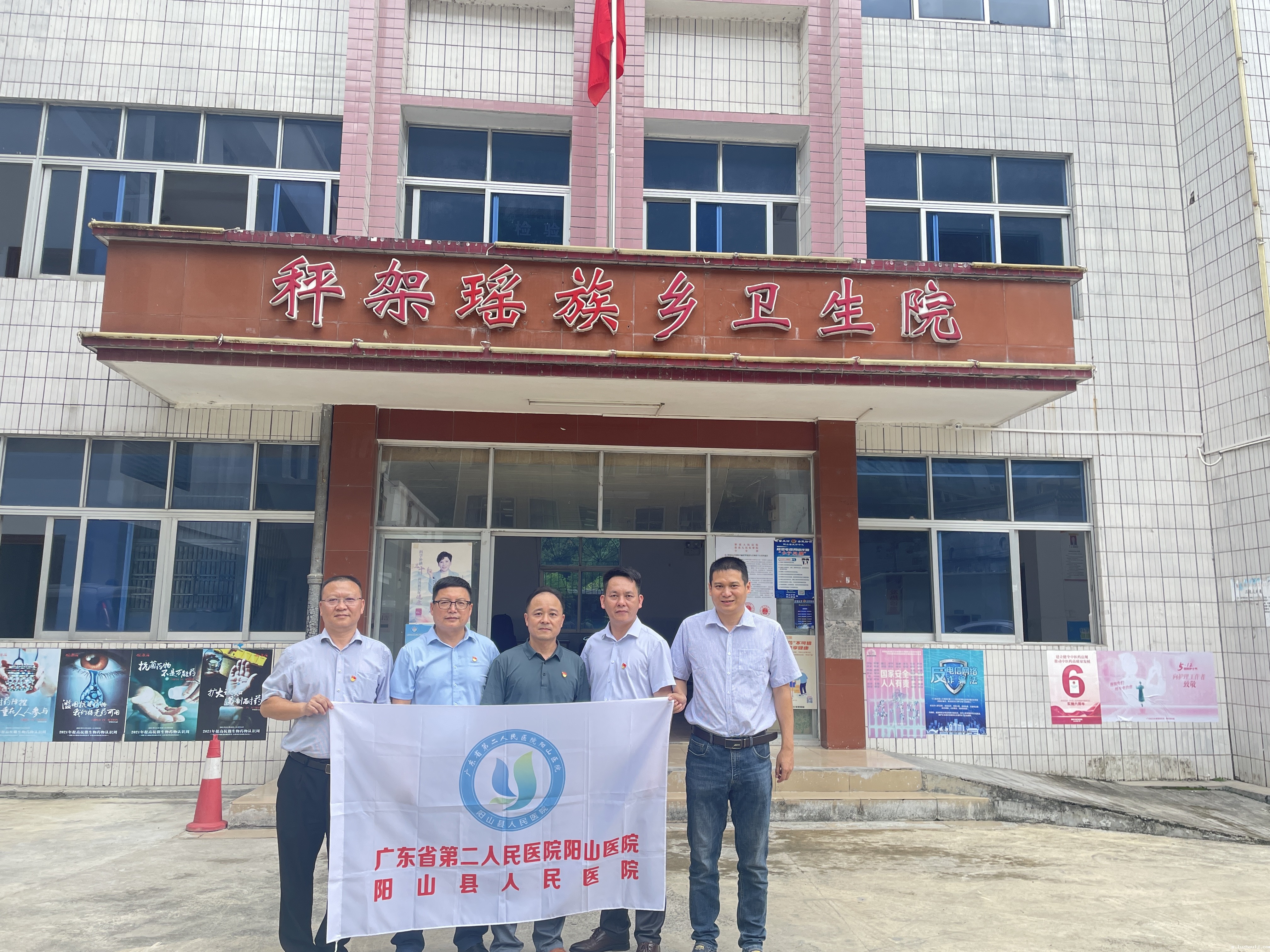 为贯彻落实乡村振兴战略,提升基层医疗卫生机构服务能力和水平,推动优质医疗卫生资源下沉,引导医务人员进一步转变服务观念,密切医患关系,优化就医环境,根据《阳山县卫生健康局关于印发“百县千镇万村高质量发展工程”行动工作方案的通知》的要求,2023年8月1日,我院党委书记古晏鸿、副院长刘百川、医务科主任陈国强、儿科医生何秋林到秤架瑶族乡卫生院开展“万名医师下乡”服务活动。